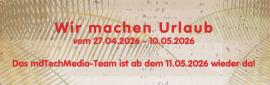 Wir machen mal Urlaub - vom 27.4.2026 - 10.05.2026. Ab dem 11.05.2026 sind wir wieder für Sie da!